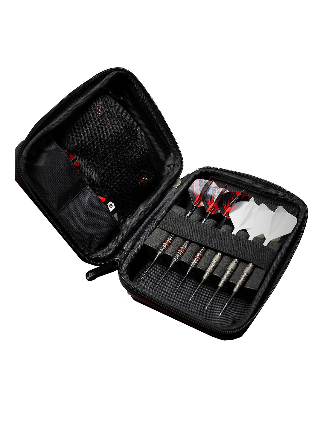 W porównaniu do innych modeli, nie trzeba demontować lotek. Specjalna budowa gwarantuje bezpieczny transport rzutek z zamontowanymi shaftami i piórkami.