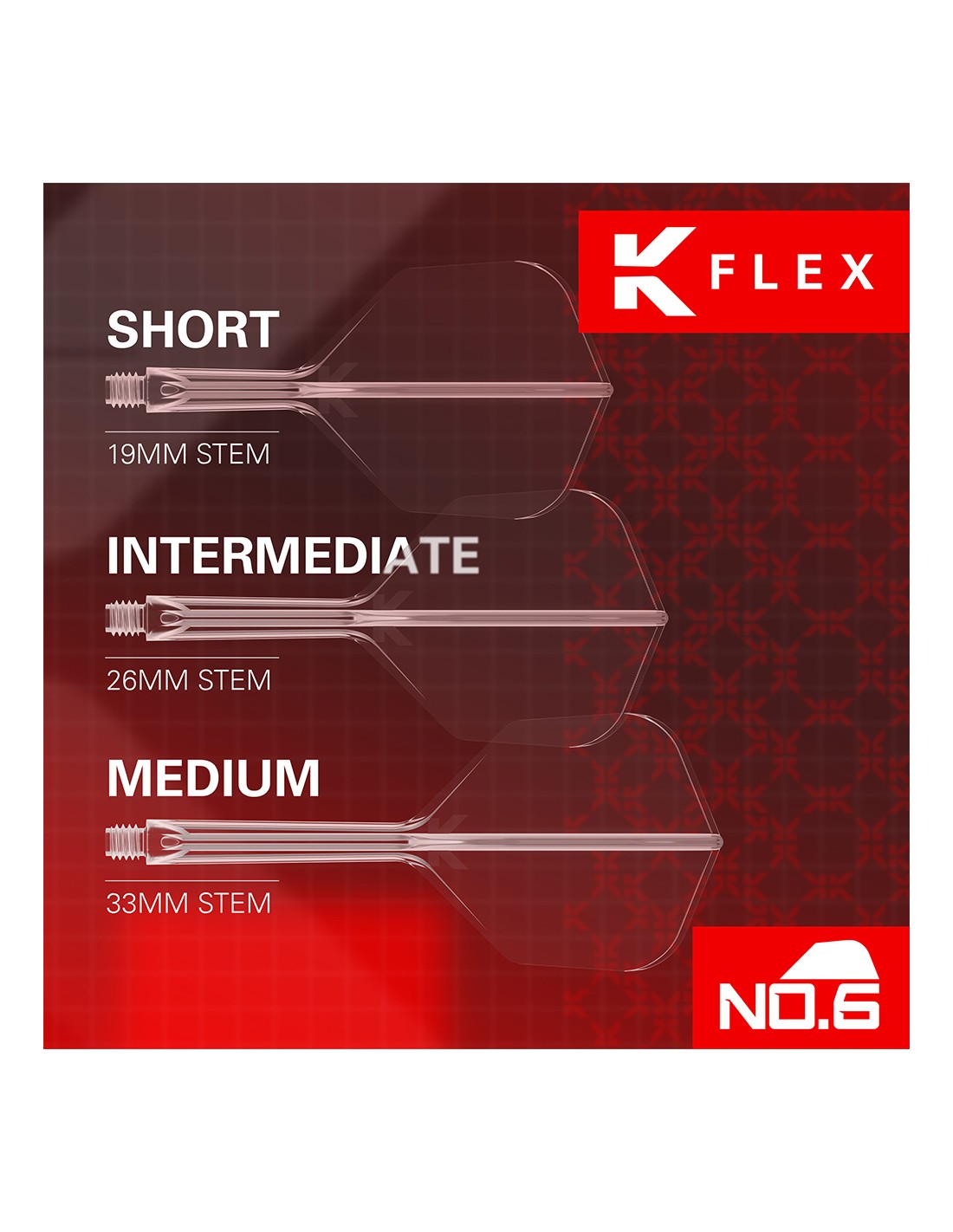 Innowacyjny system Target K-FLEX łączy w sobie doskonałe właściwości shaftów i piórek. Ten system gwarantuje idealne 90-stopniowe ułożenie piórka, co znacząco poprawia precyzję rzutów. Shafty/piórka wykonane z wysokiej jakości materiału cechującego się dużą wytrzymałością.