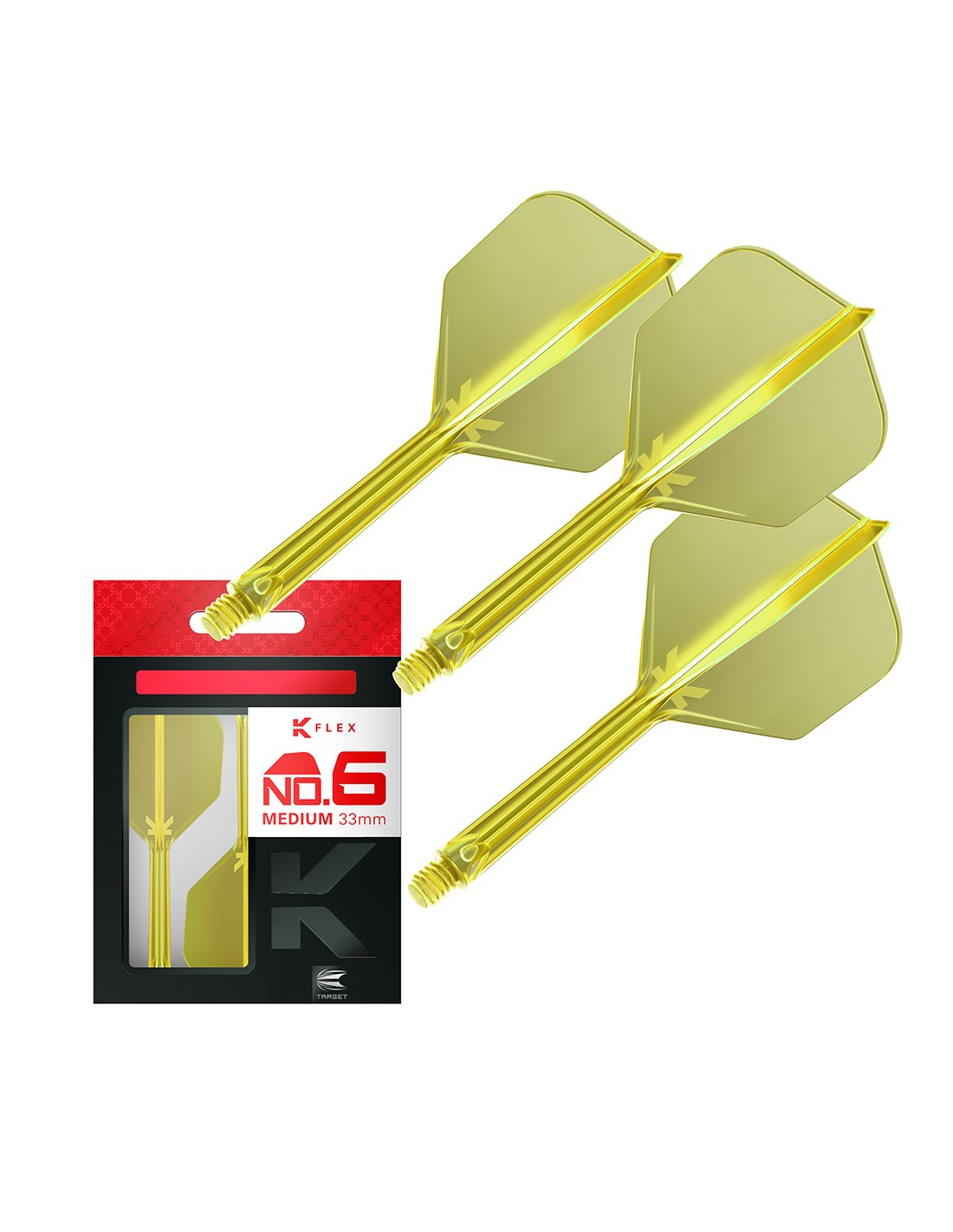 Innowacyjny system Target K-FLEX łączy w sobie doskonałe właściwości shaftów i piórek. Ten system gwarantuje idealne 90-stopniowe ułożenie piórka, co znacząco poprawia precyzję rzutów. Shafty/piórka wykonane z wysokiej jakości materiału cechującego się dużą wytrzymałością.