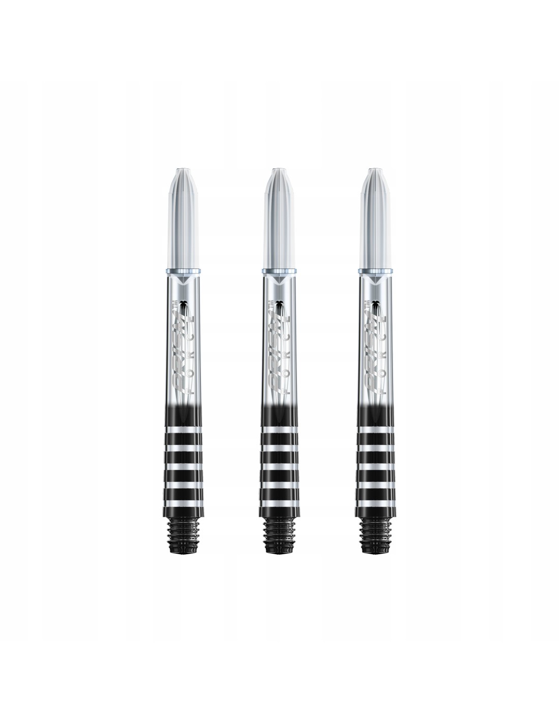 Shafty nylonowe (plastikowe) Winmau Prism Force. Opakowanie zawiera 3 shafty oraz 3 zaciski.