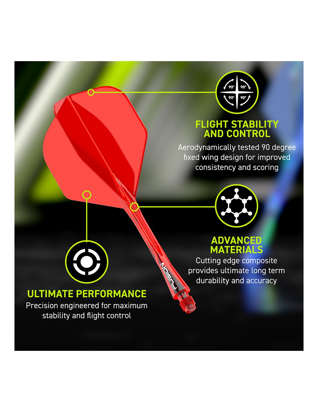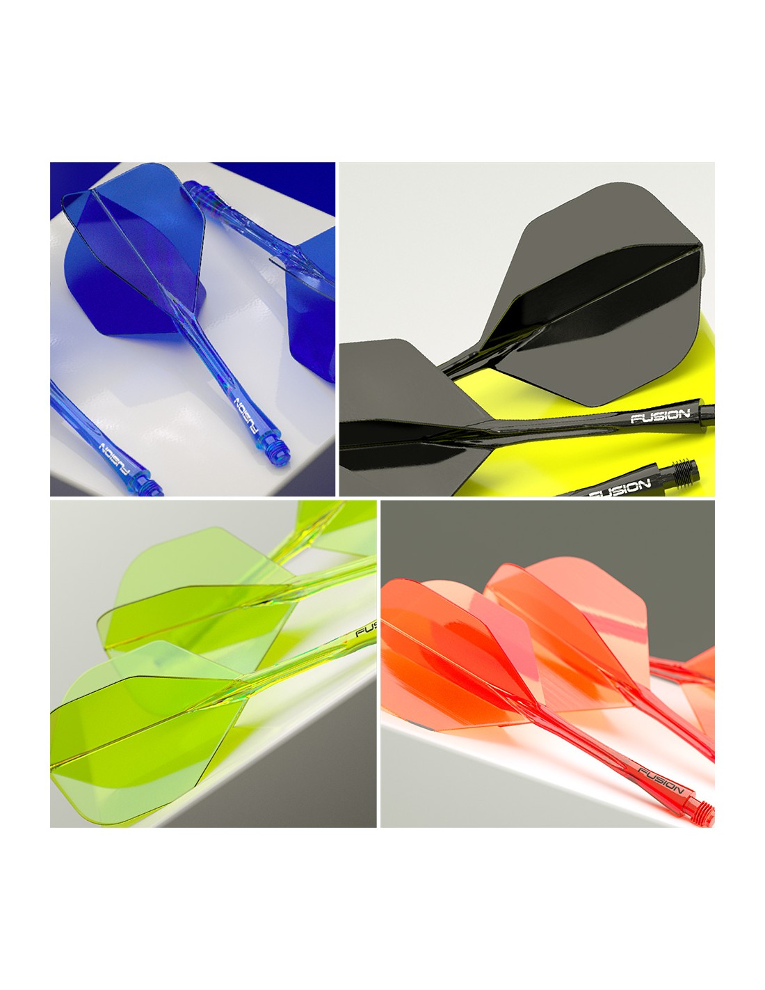 Innowacyjny system Winmau Fusion łączy w sobie doskonałe właściwości shaftów i piórek. Ten system gwarantuje idealne 90-stopniowe ułożenie piórka, co znacząco poprawia precyzję rzutów. Shafty/piórka wykonane z wysokiej jakości materiału cechującego się dużą wytrzymałością.