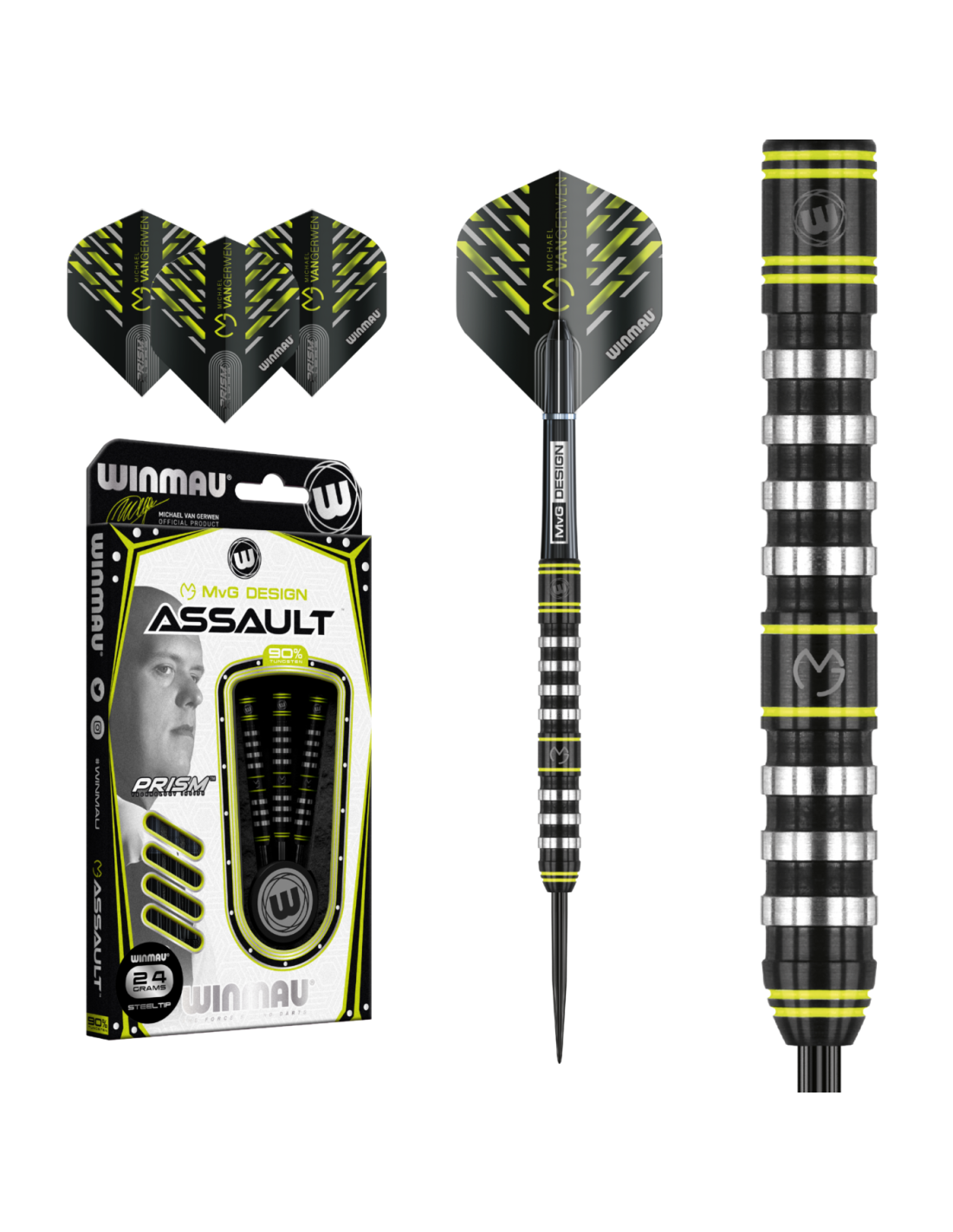Współtworzone z MvG Design rzutki ASSAULT gwarantują perfekcyjny chwyt i precyzję, wykorzystując równowagę i kontrolę rozwijaną przez dziesięciolecia. ASSAULT pozwala najbardziej entuzjastycznym graczom w pełni wykorzystać swoje umiejętności. Innowacyjna konstrukcja z zoptymalizowanym profilem chwytu pierścieniowego i powłoką Onyx PvD, wykończona charakterystyczną, subtelną, zieloną stylizacją MvG.