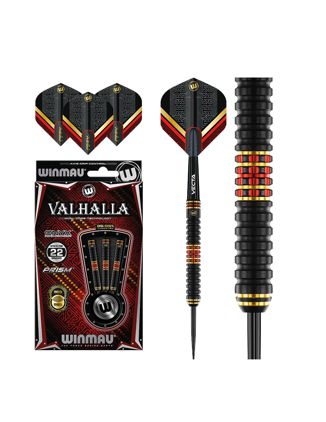Winmau VALHALLA to nowoczesne lotki, które łączą w sobie tradycję i innowację, idealne dla profesjonalnych graczy, którzy cenią sobie precyzję i doskonałość. Lotki wykonane w zaawansowanej technologii Dual Core, łącząc dwie części składające się kolejno z 95% i 85% wolframu, co zapewnia optymalny balans i trajektorię lotu.