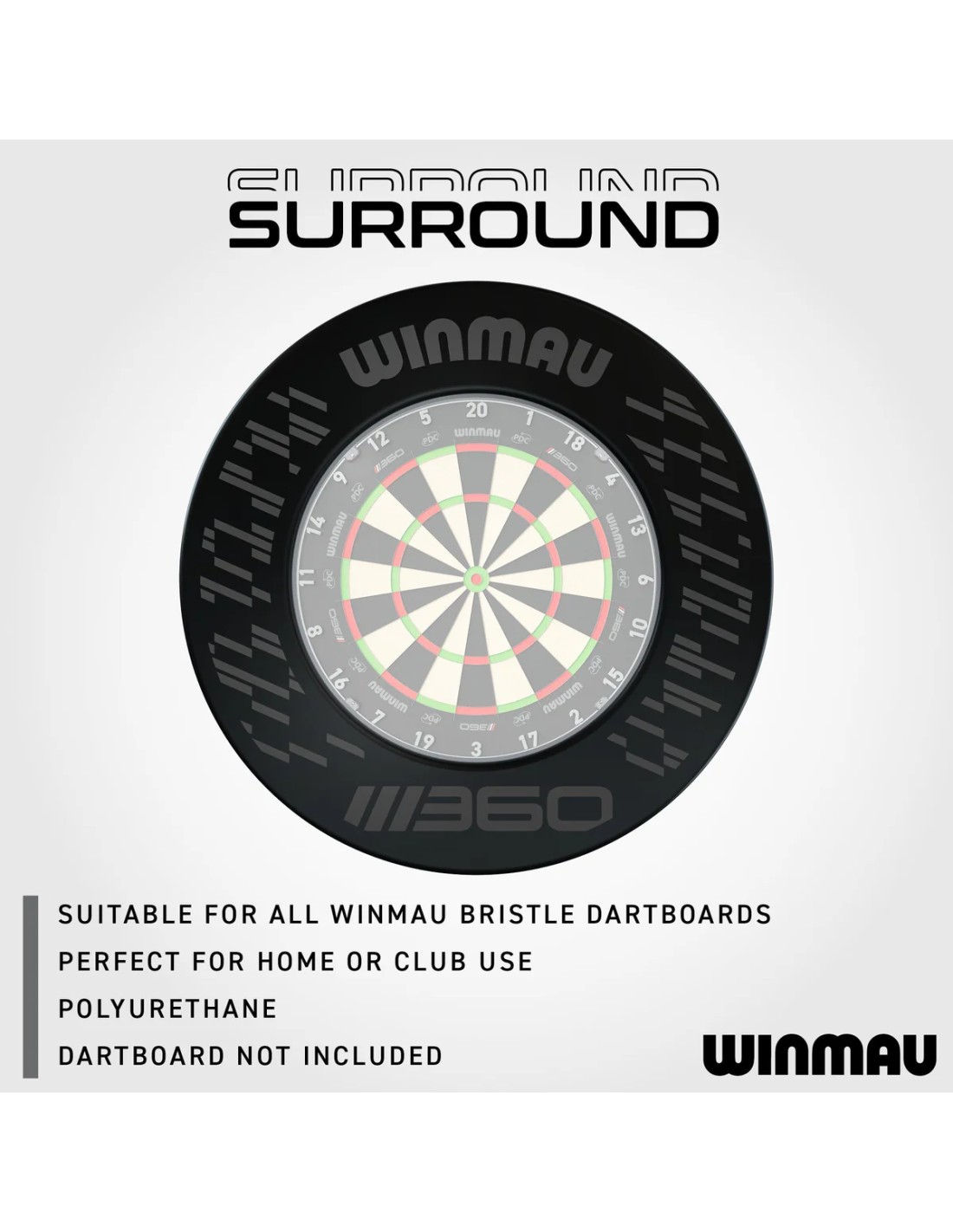 Winmau Surround Outshot chroni ścianę za tarczą, a także końcówki twoich lotek. Winmau Surround Outshot zmieści się w wymiarach tarcz wszystkich marek. Trzeba tylko zamocować ramkę do tarczy (nie ma potrzeby przykręcania, oponę "wciska się" na tarczę). Ze względu na dużą gęstość zastosowanego materiału, ta obudowa wytrzyma długi czas.